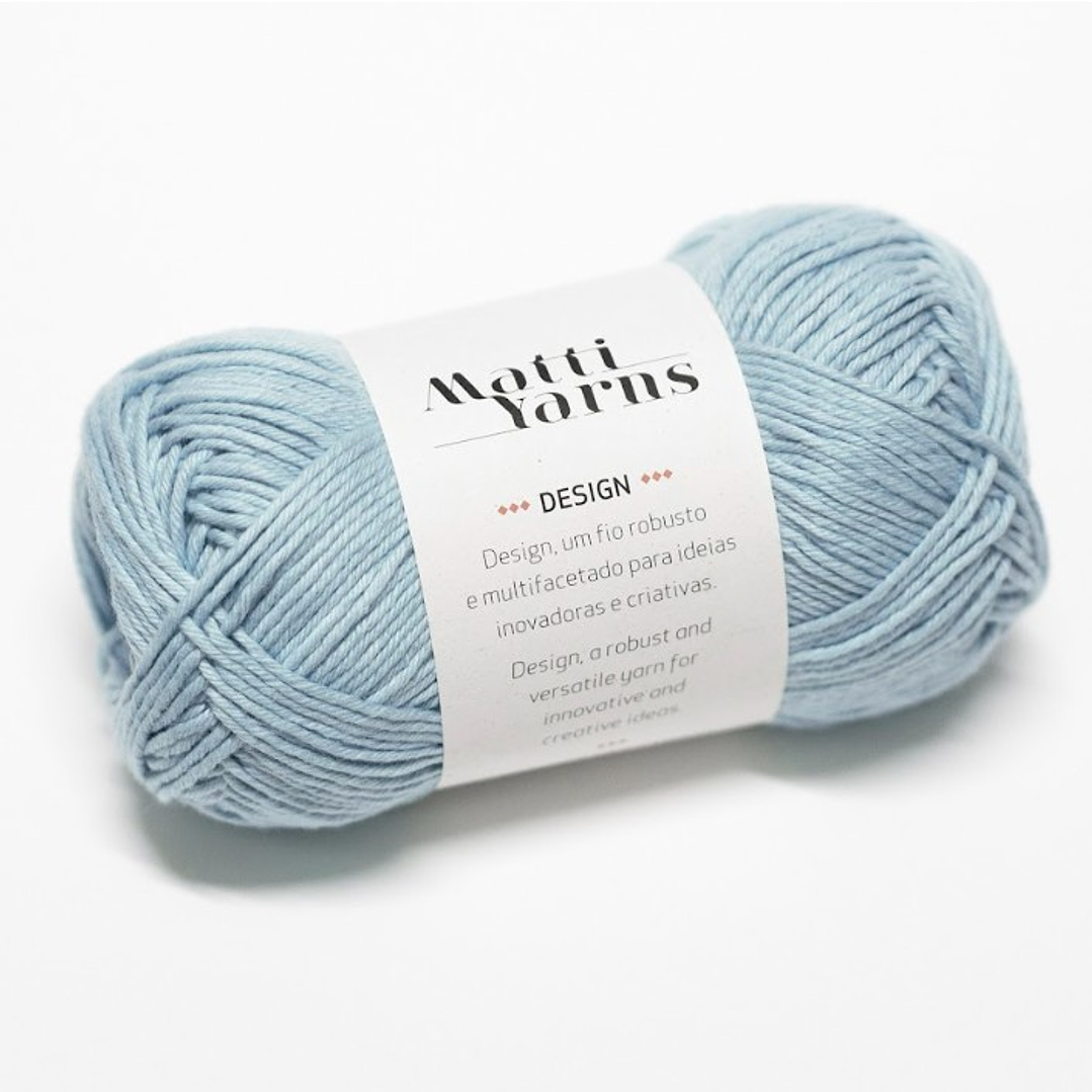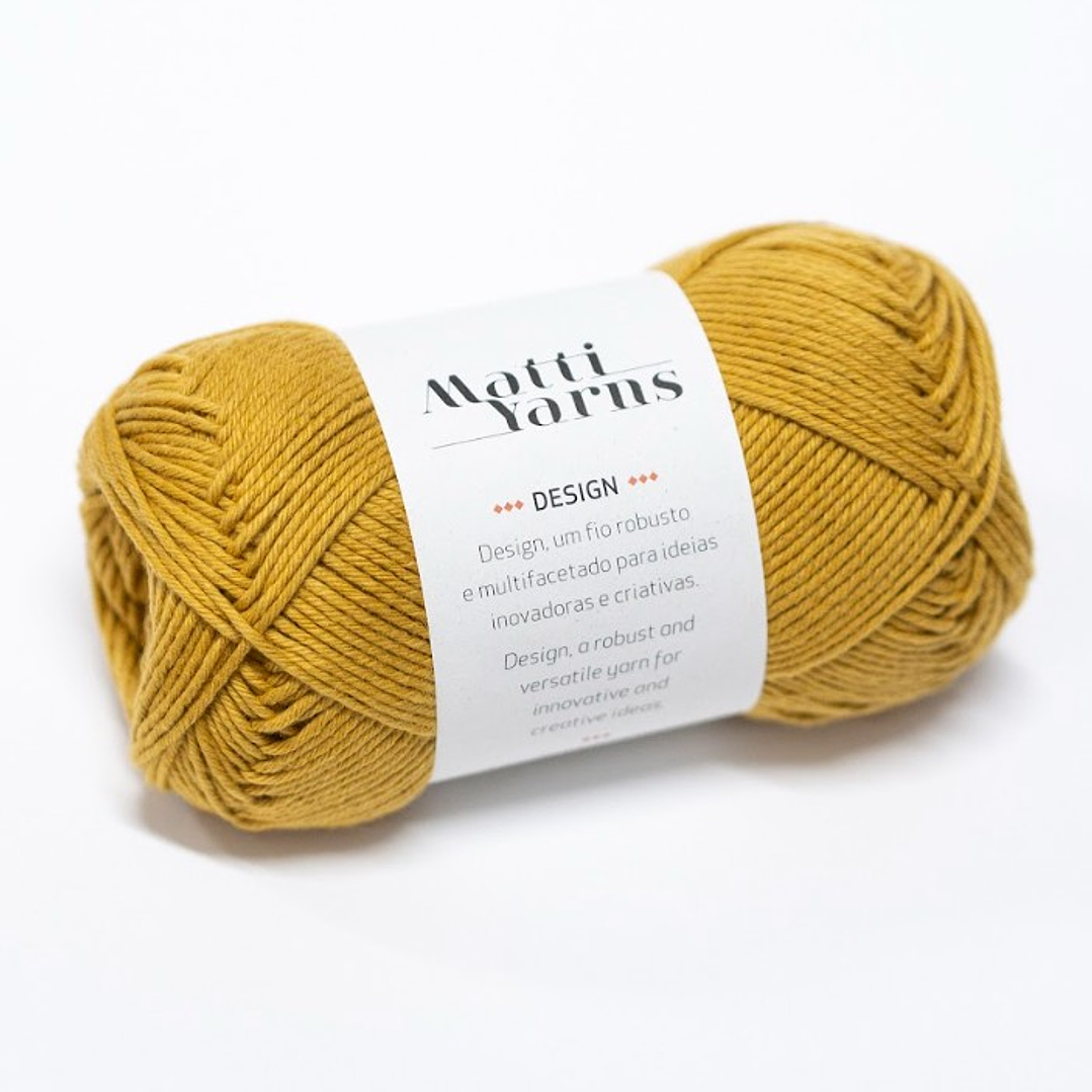 Design é um fio 100 % algodão, da marca portuguesa Matti Yarns. Fio robusto, com boa torção, ideal para crochet, tricot, tricotin e punch needle, pois mantém sempre a sua estrutura o que confere uma boa definição do ponto. Bastante macio ao toque.